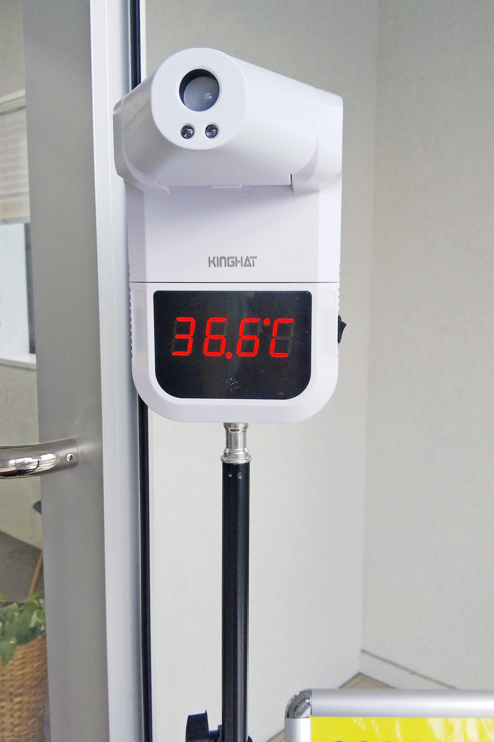 非接触型の検温装置を設置し、来訪されるお客様・業者様に検温をお願いしております。
