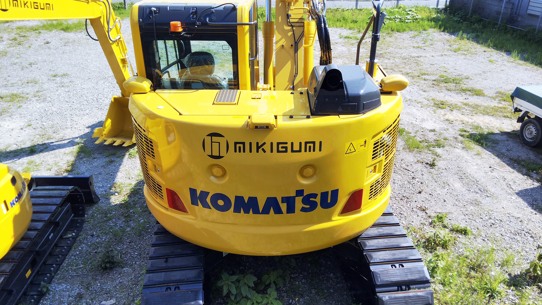三木組では、社用車の「mikigumi」ロゴ隣に「コウノトリを応援しています」マグネットを貼り、