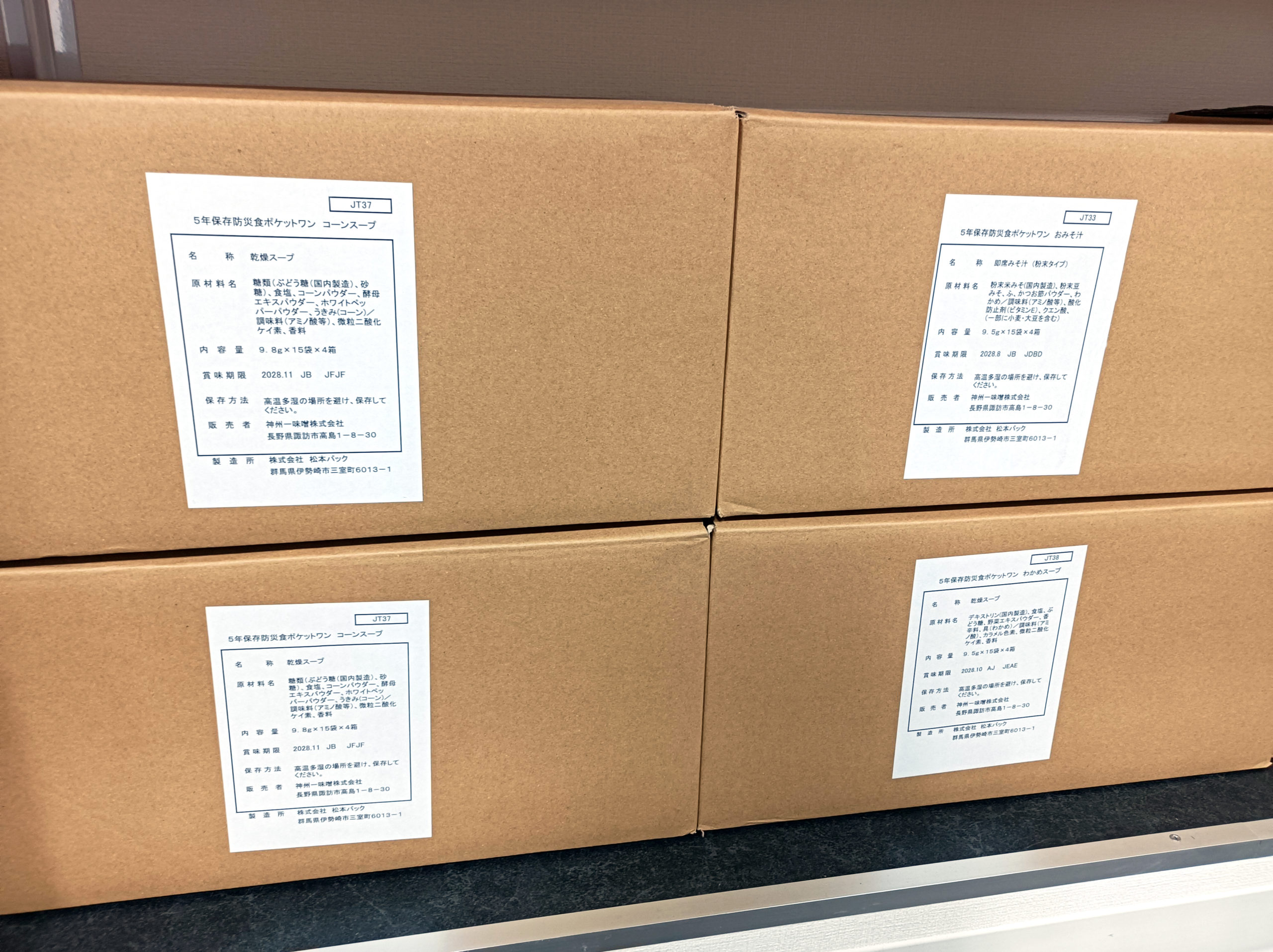 その一環として、非常食と飲料水の備蓄を行なっております。