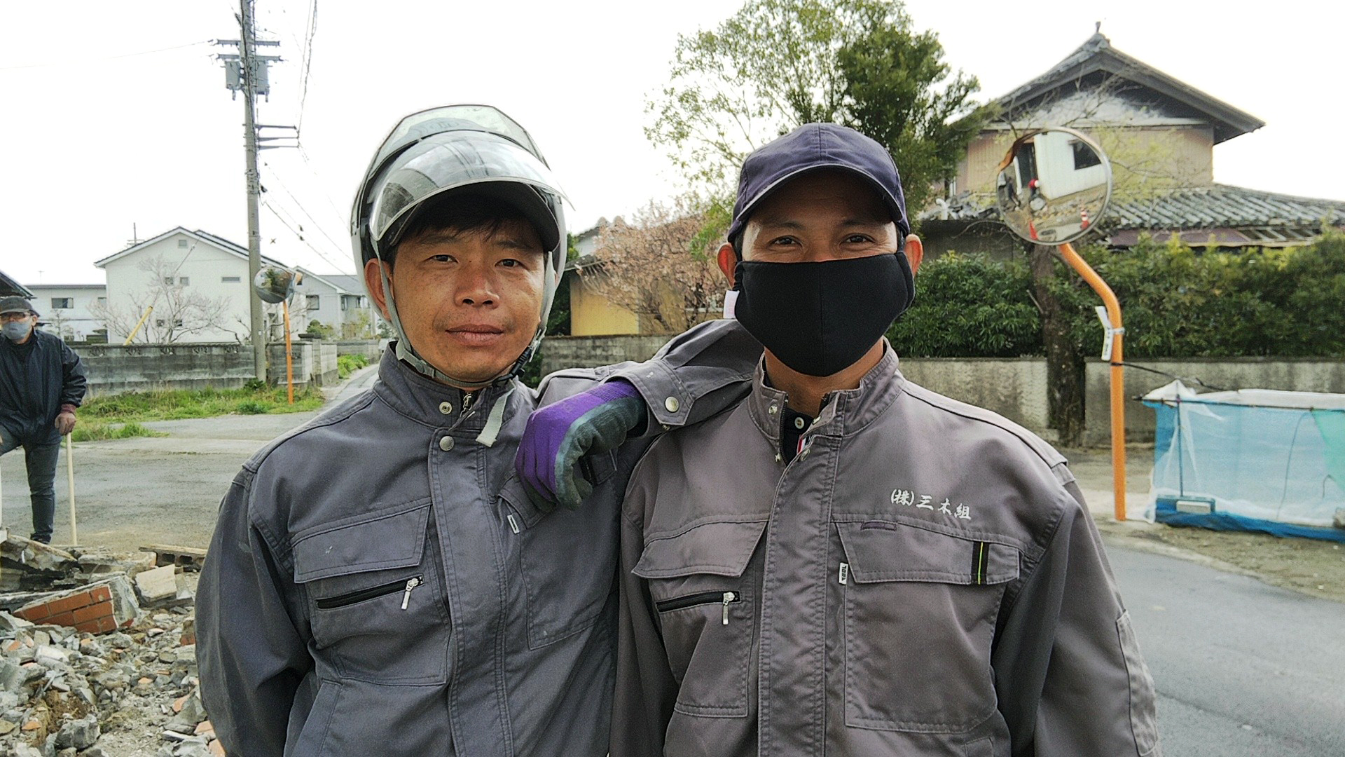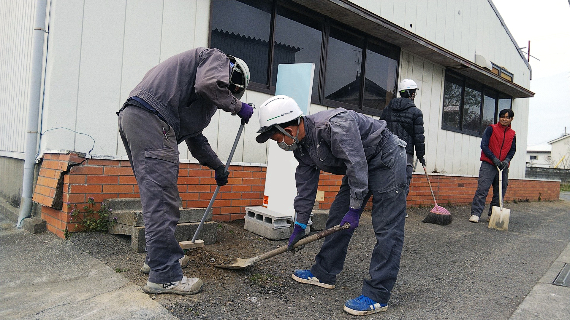 色々な作業を教わる中、日本語がまだまだ難しい様子。