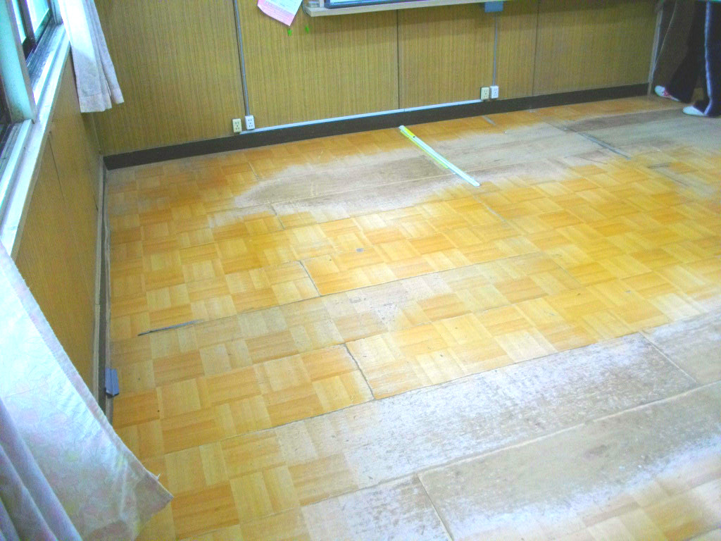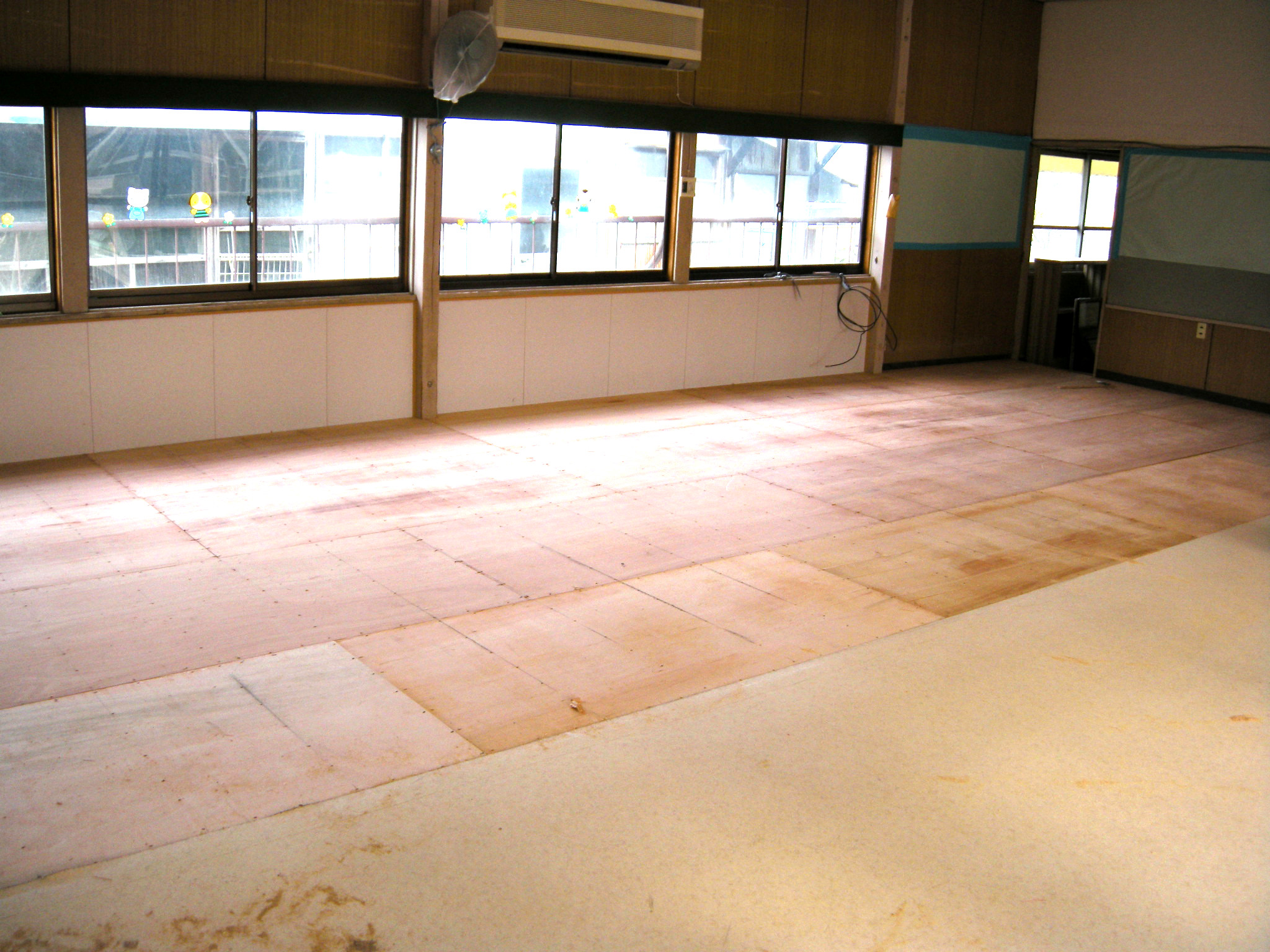 長年使用してきた教室の床が傷んできた為、床改修工事を行いました。