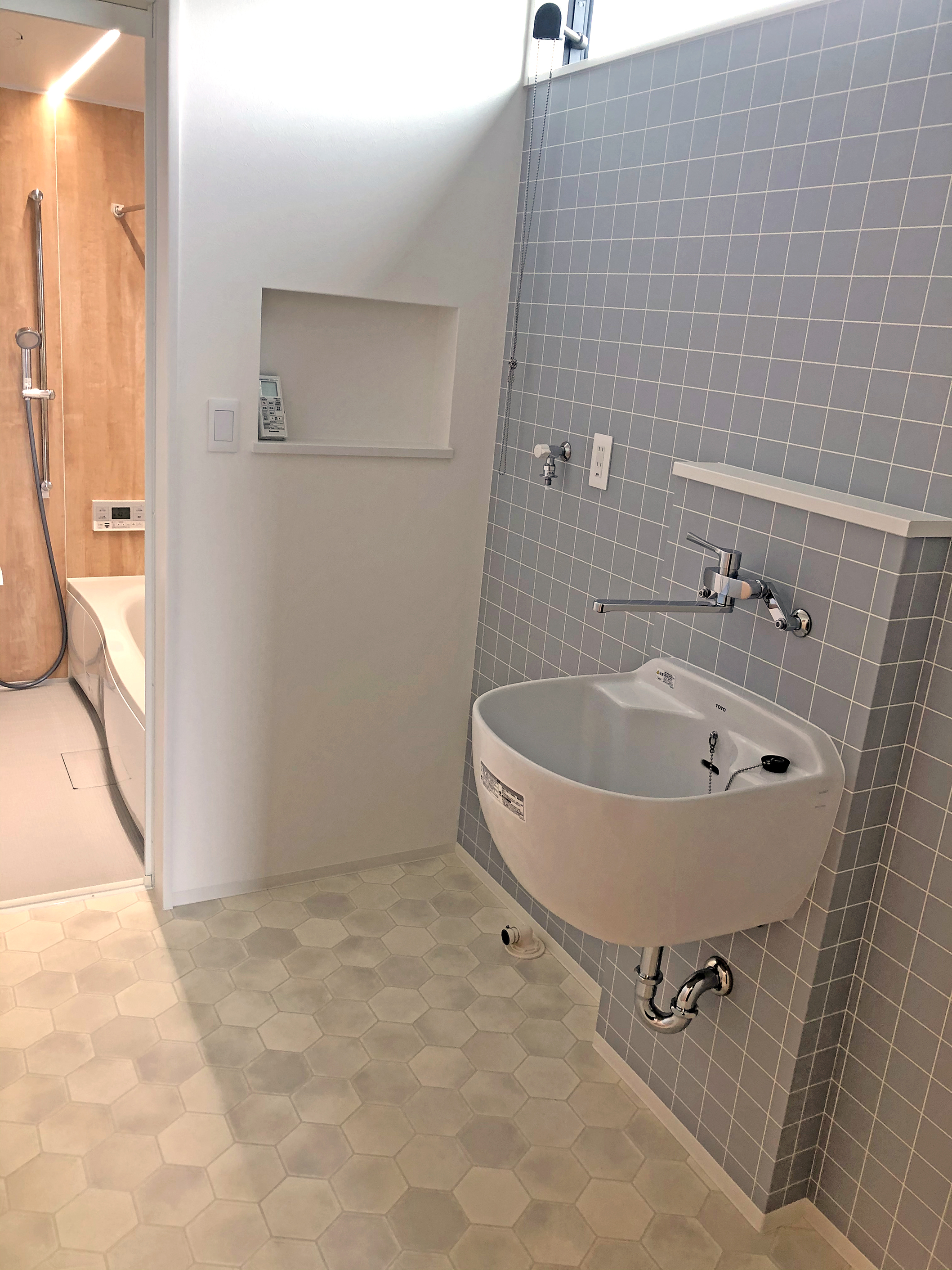 脱衣室には、底の深いスロップシンクを設置。