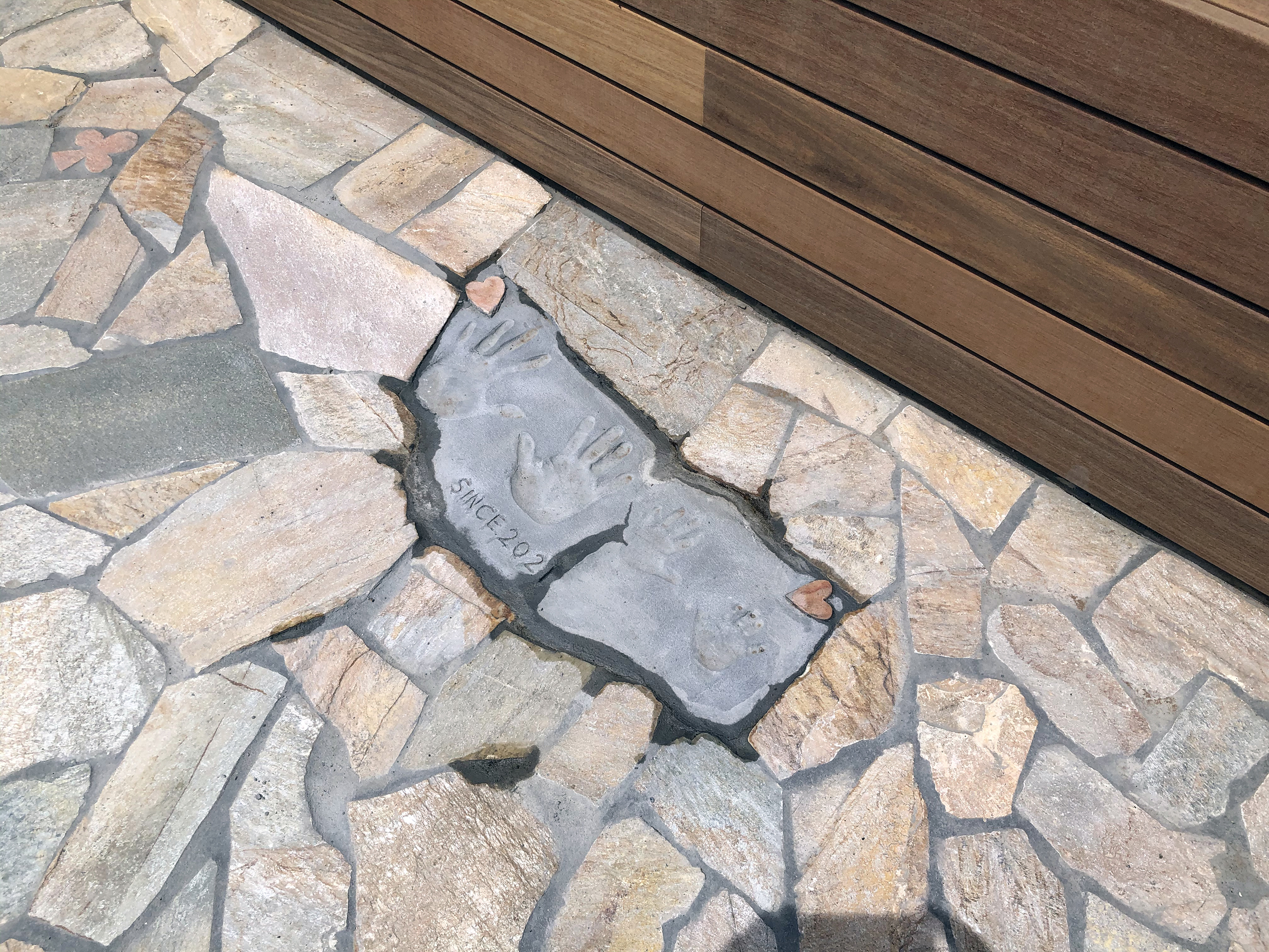 外の玄関タイルには動物のシルエットと、