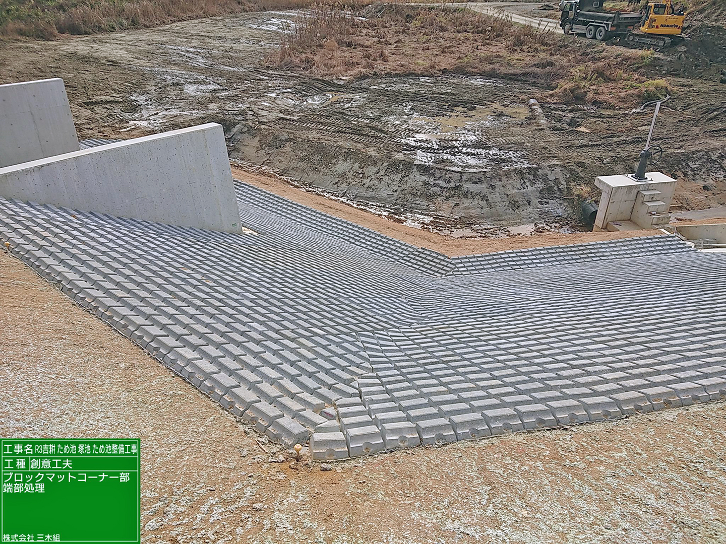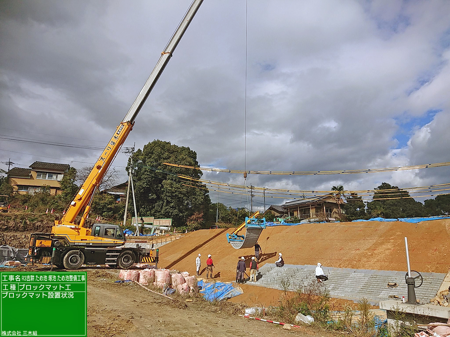 4期目となる今回は、ブロックマット・堤体盛土の施工となります。