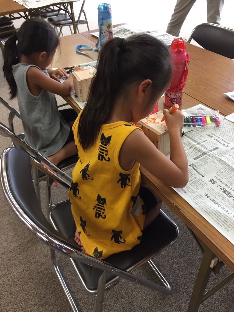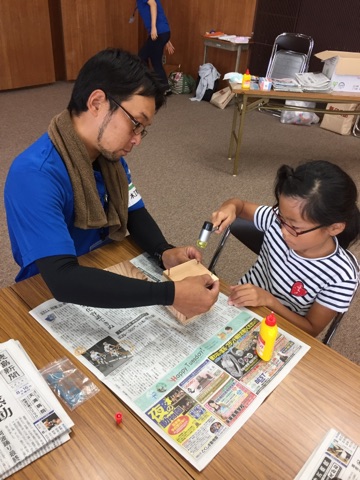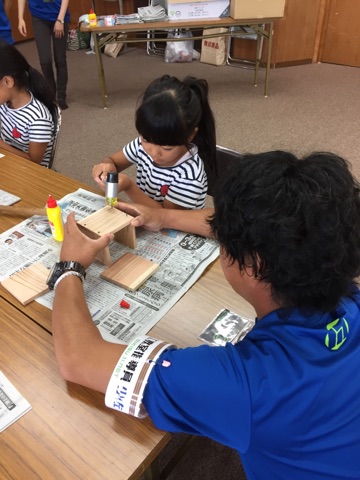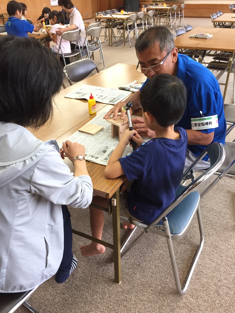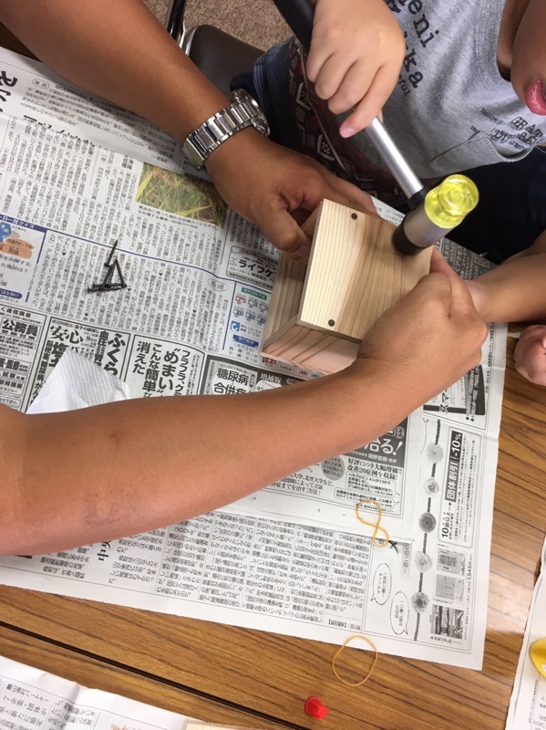 慣れない手つきで金づちを持ち、釘を打って一生懸命に製作している子供たちの姿はとても微笑ましかったです。