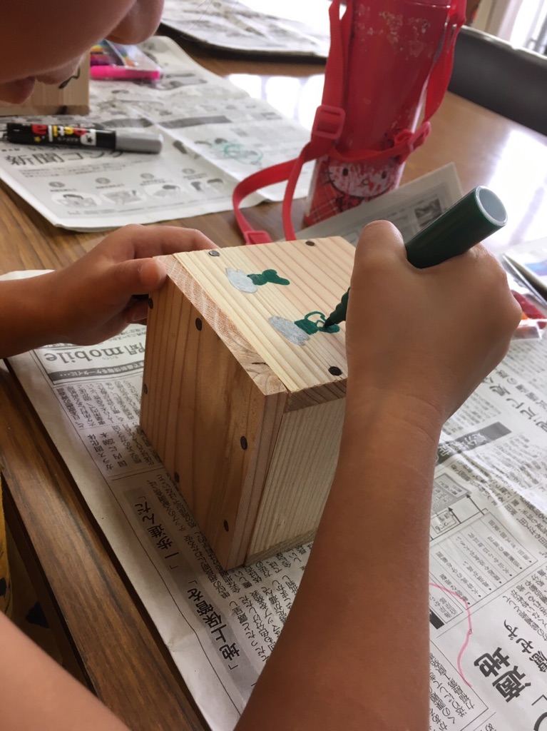 子供たちのセンスが素晴らしく、ペン立てがどんどんカラフルに変身していきました。