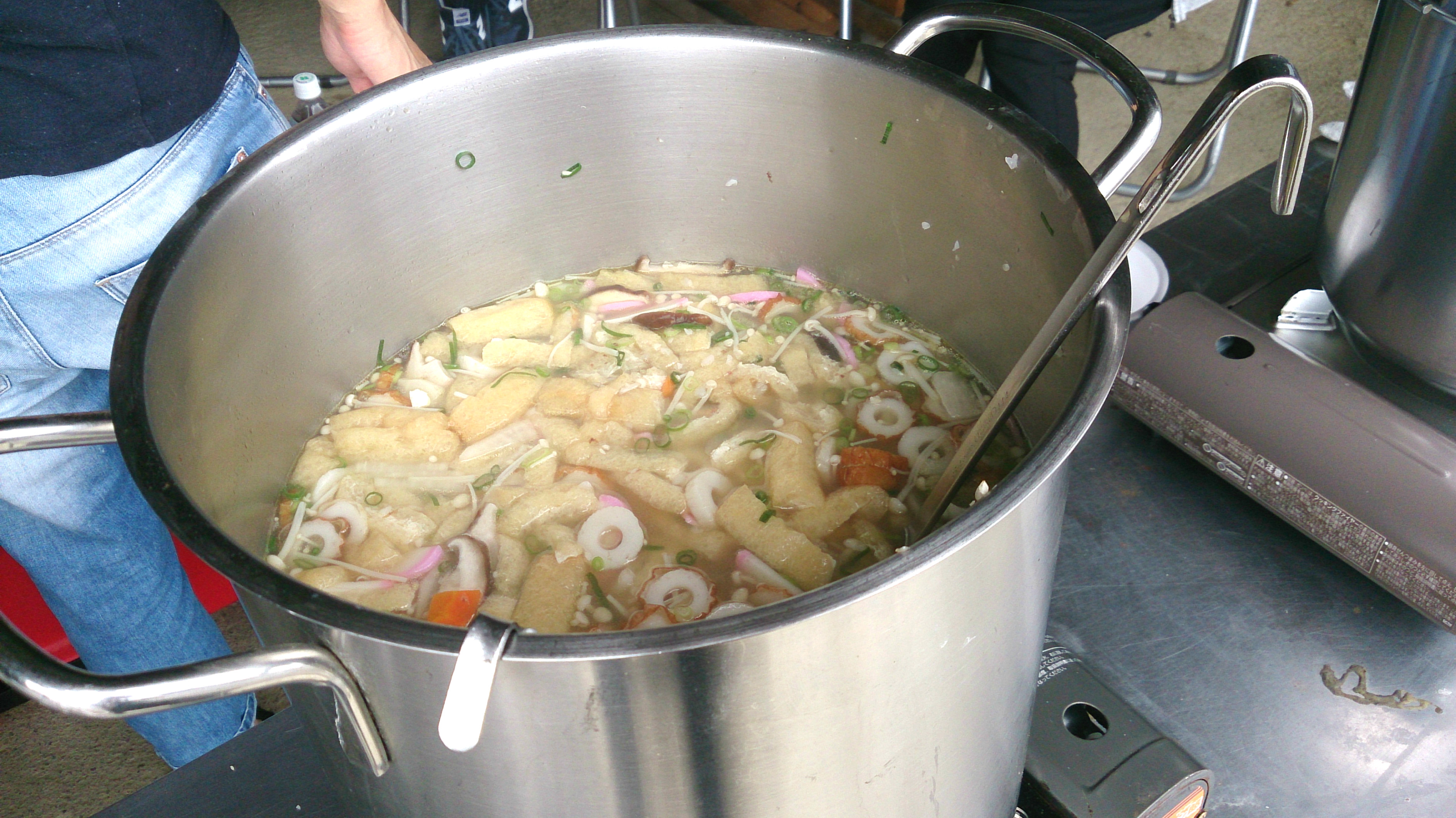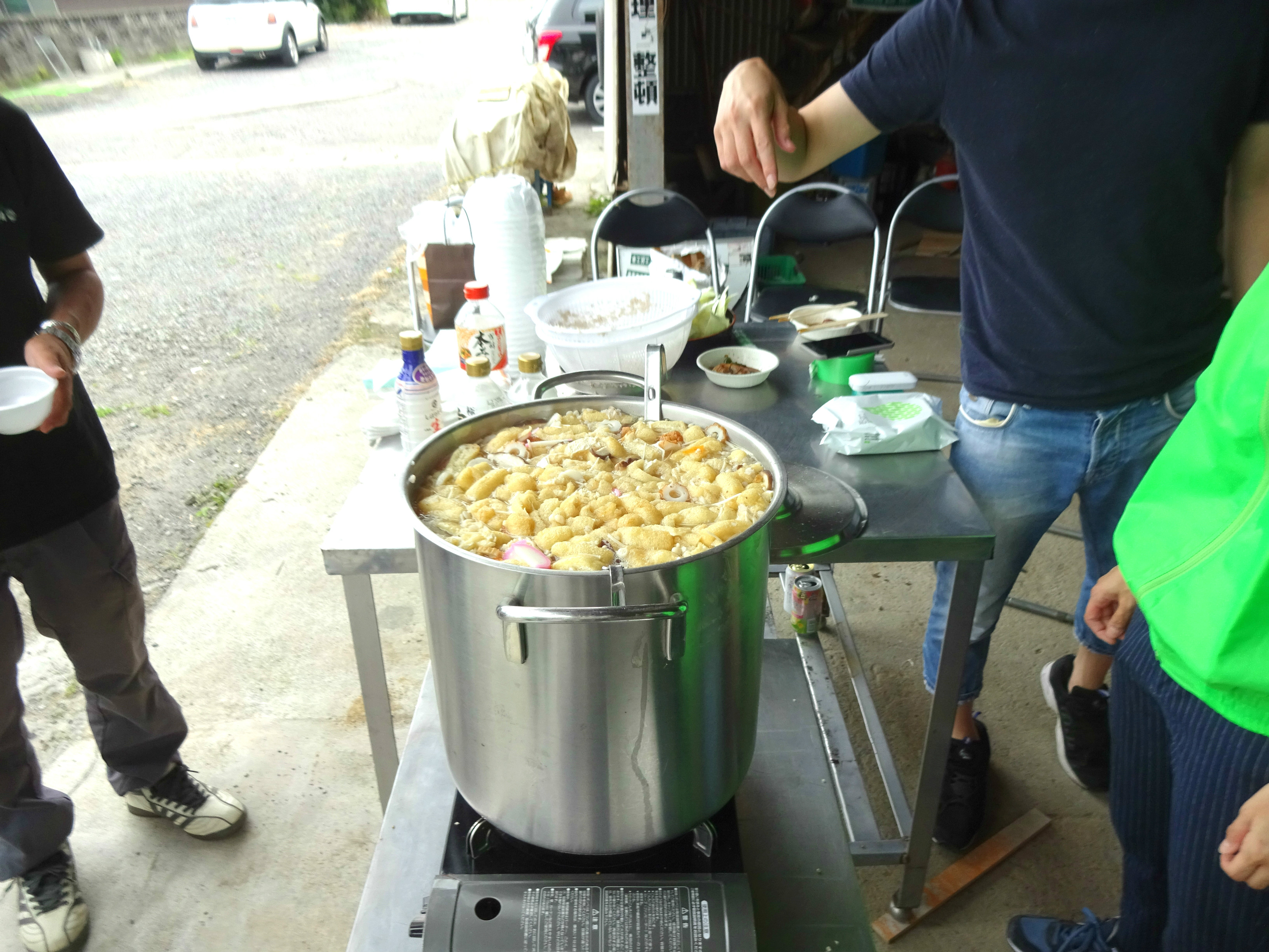 災害時に電気・ガスが使用できないことを想定し、家庭用カセットコンロを使って、郷土料理のそば米汁を作りました。