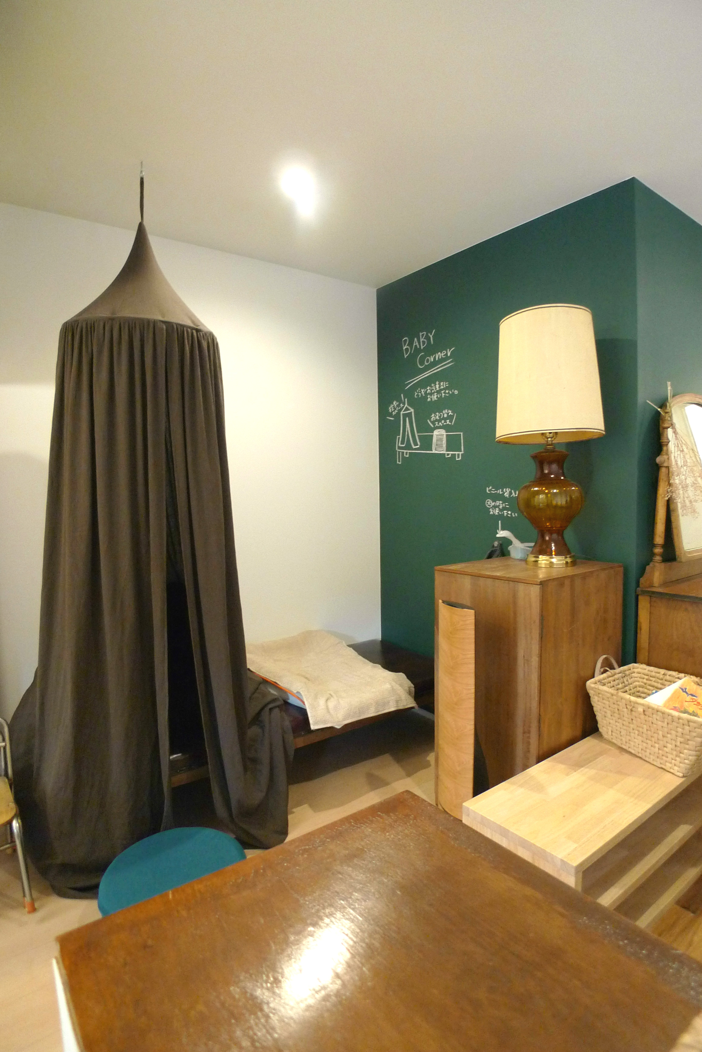 こだわりは、壁に黒板として使用できる塗料を塗っている点です。
