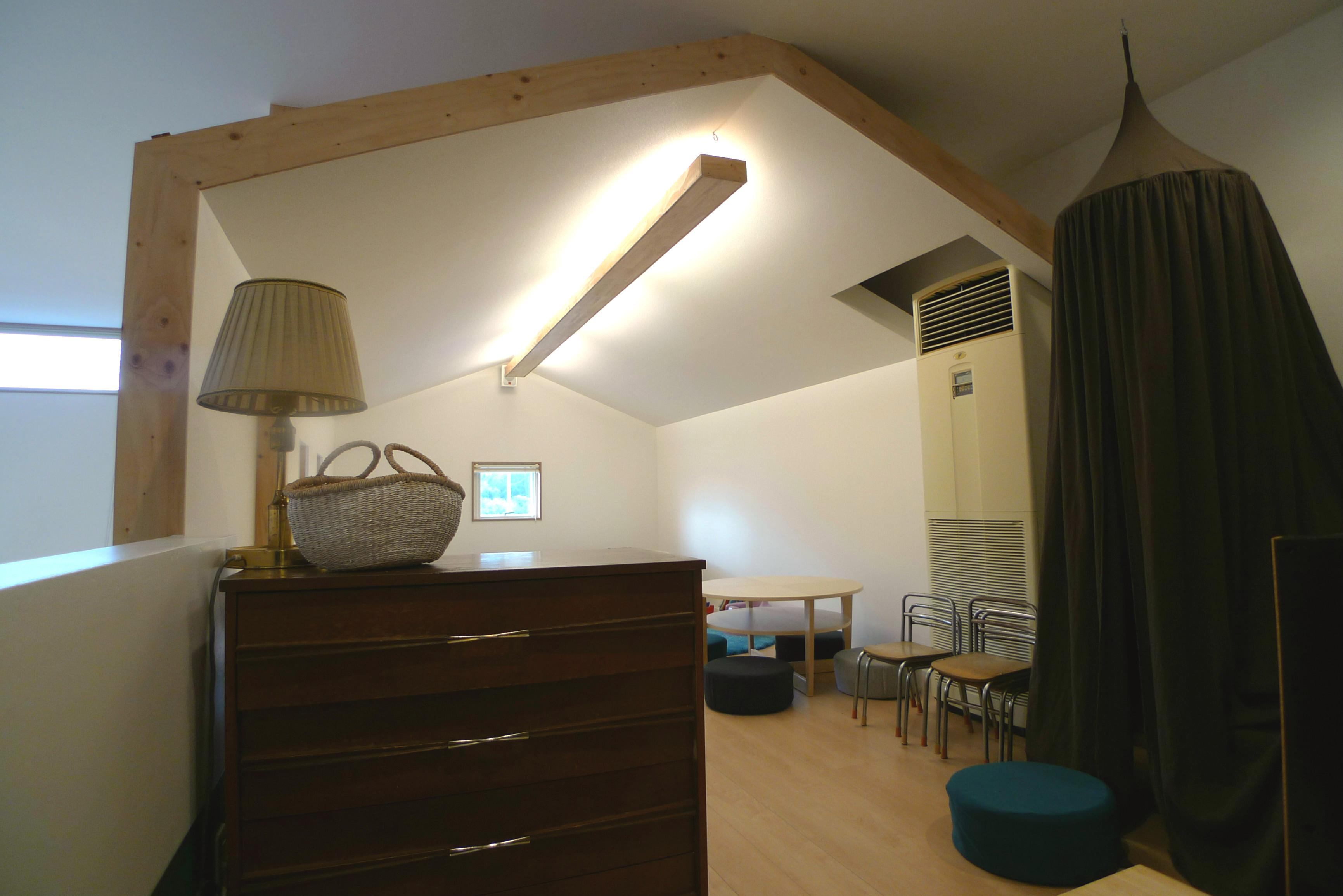 2階の天井は家の屋根の形を型どっていてキュートな造りとなっています。