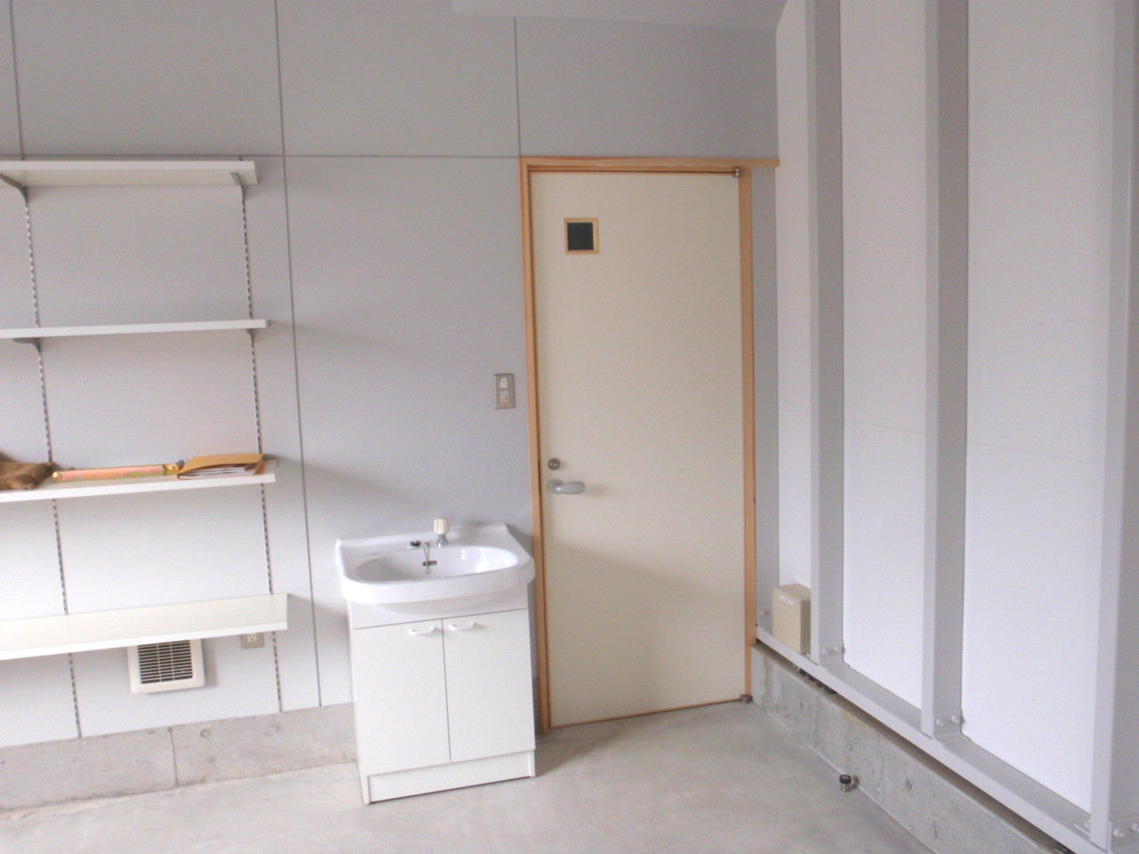 1階は、消防車が待機できる駐車場となっており、トイレ・洗面所が設置されています。