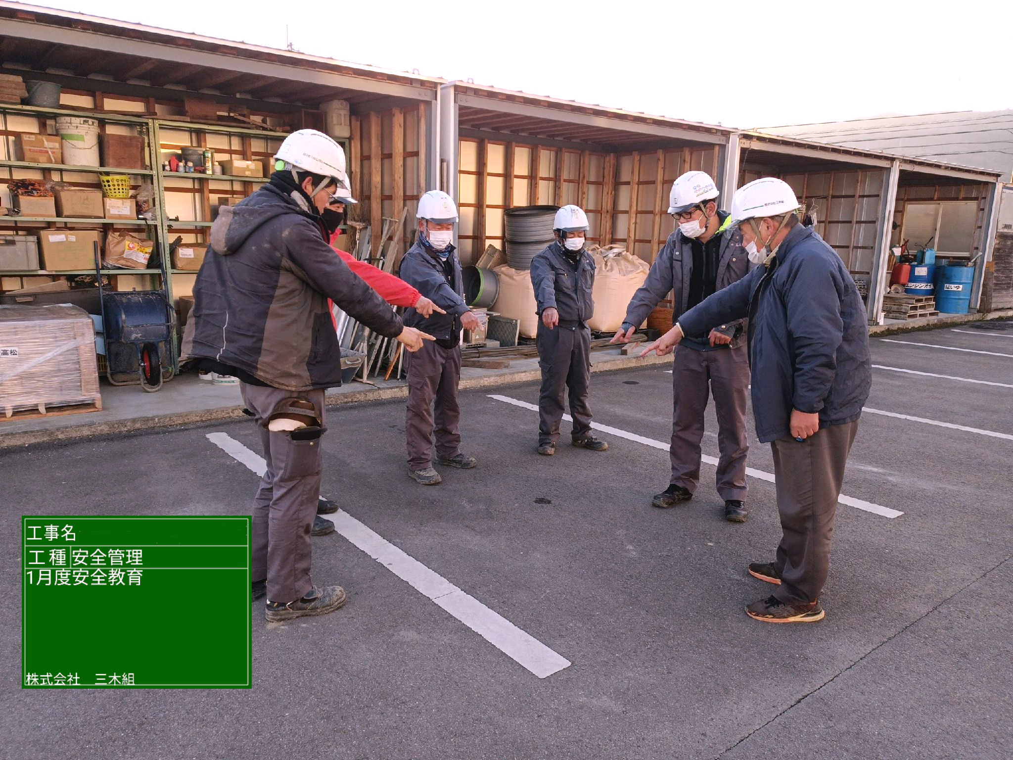 着工前に安全決意及び意志統一を図るために、現場構成部員で円陣を組みました。